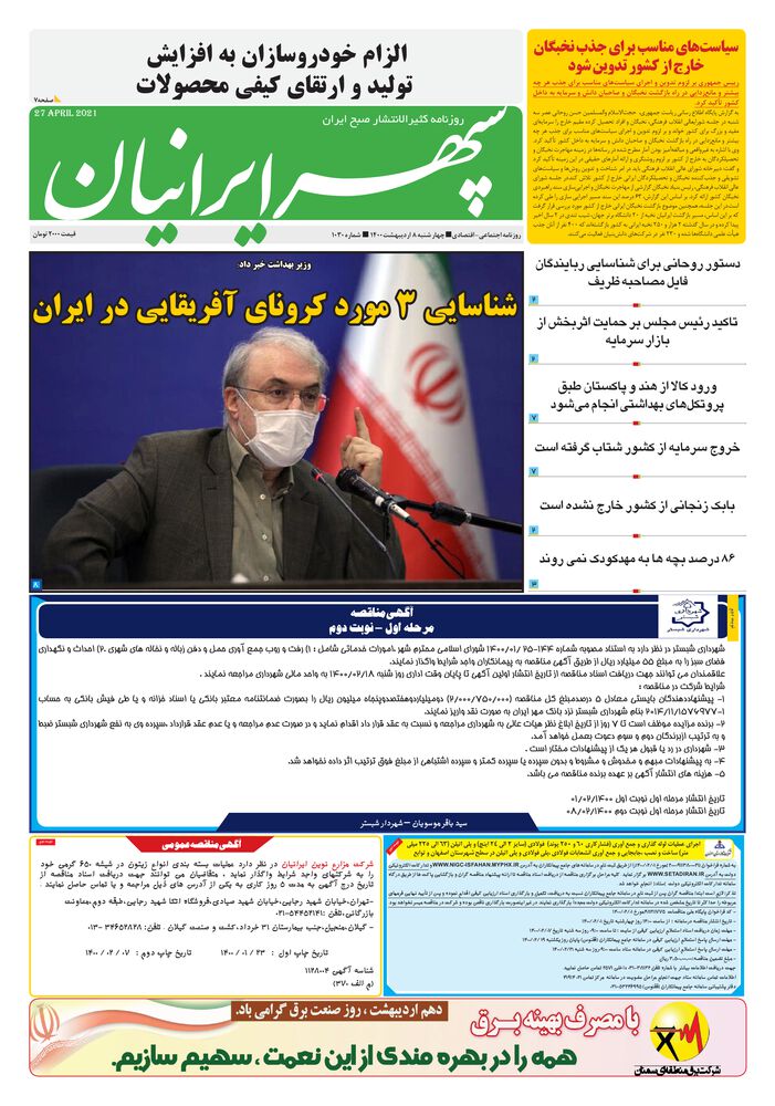 روزنامه اجتماعی -اقتصادی چهار شنبه 8اردیبهشت 1400