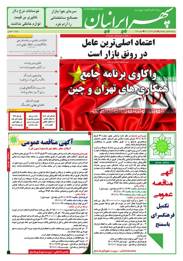 روزنامه اجتماعی -اقتصادی یکشنبه 27اذر 1401