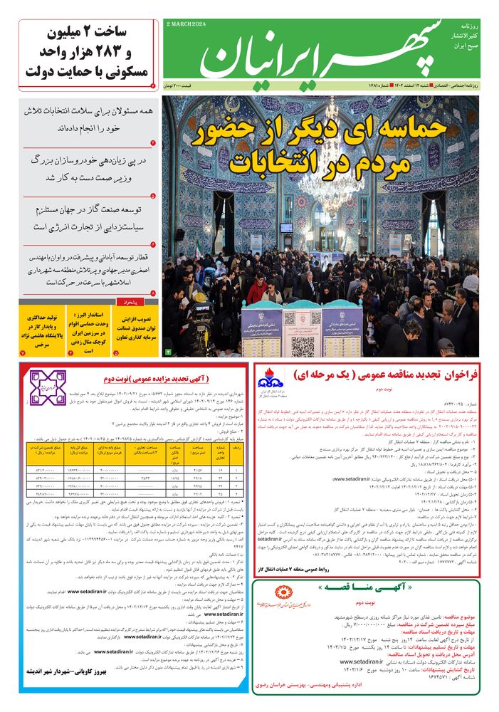 روزنامه سپهرایرانیان شماره 1781