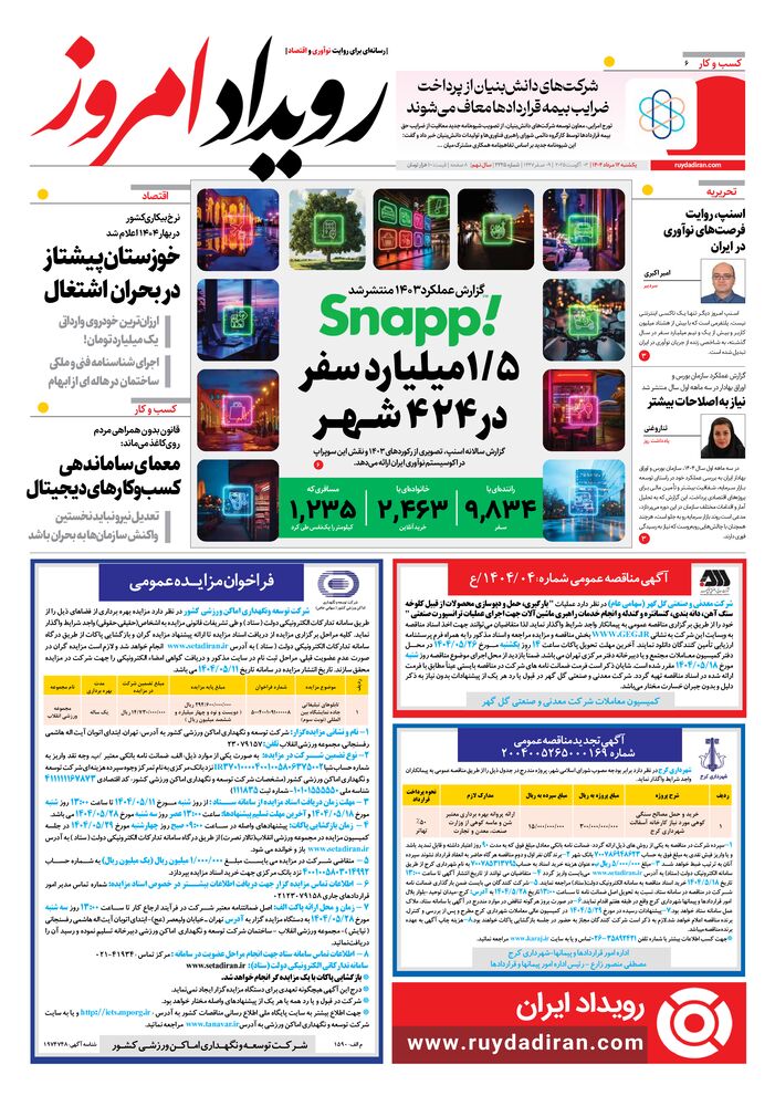 روزنامه رویداد امروز شماره 2225