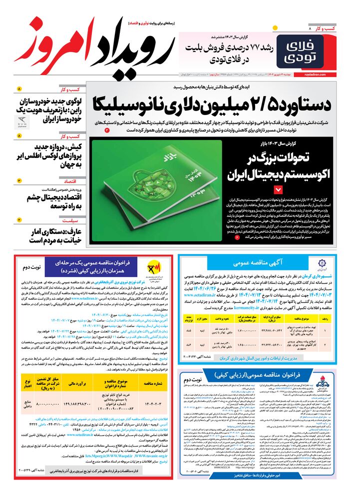 روزنامه رویداد امروز شماره 2257