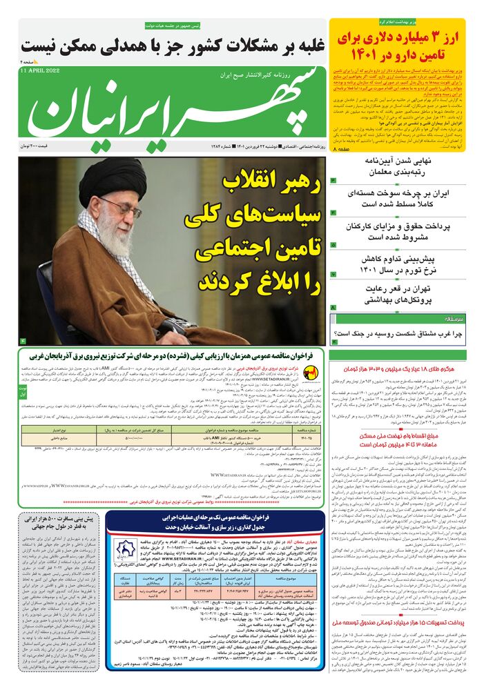 روزنامه اجتماعی -اقتصادی دوشنبه 22فروردین 1401