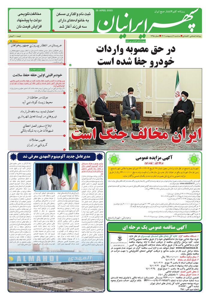 روزنامه اجتماعی -اقتصادی سه شنبه 6اردیبهشت 1401