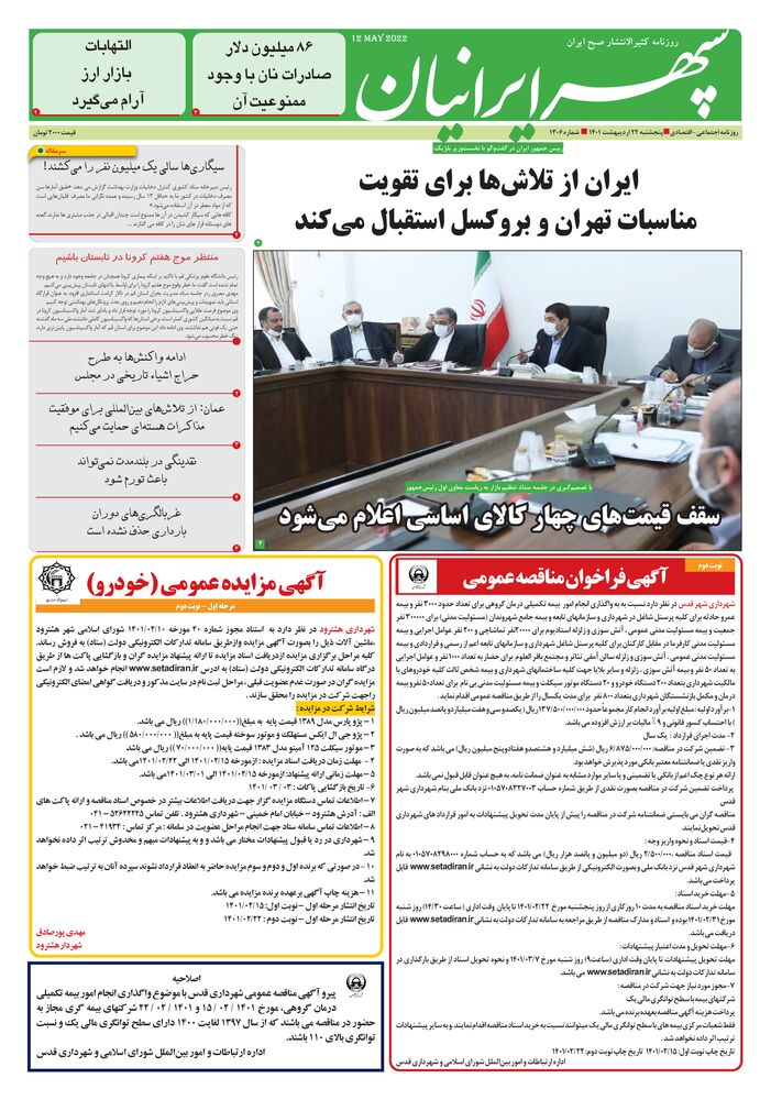 روزنامه اجتماعی -اقتصادی پنجشنبه 22اردیبهشت 1401