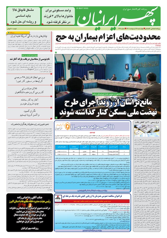 روزنامه اجتماعی -اقتصادی چهار شنبه 28اردیبهشت 1401