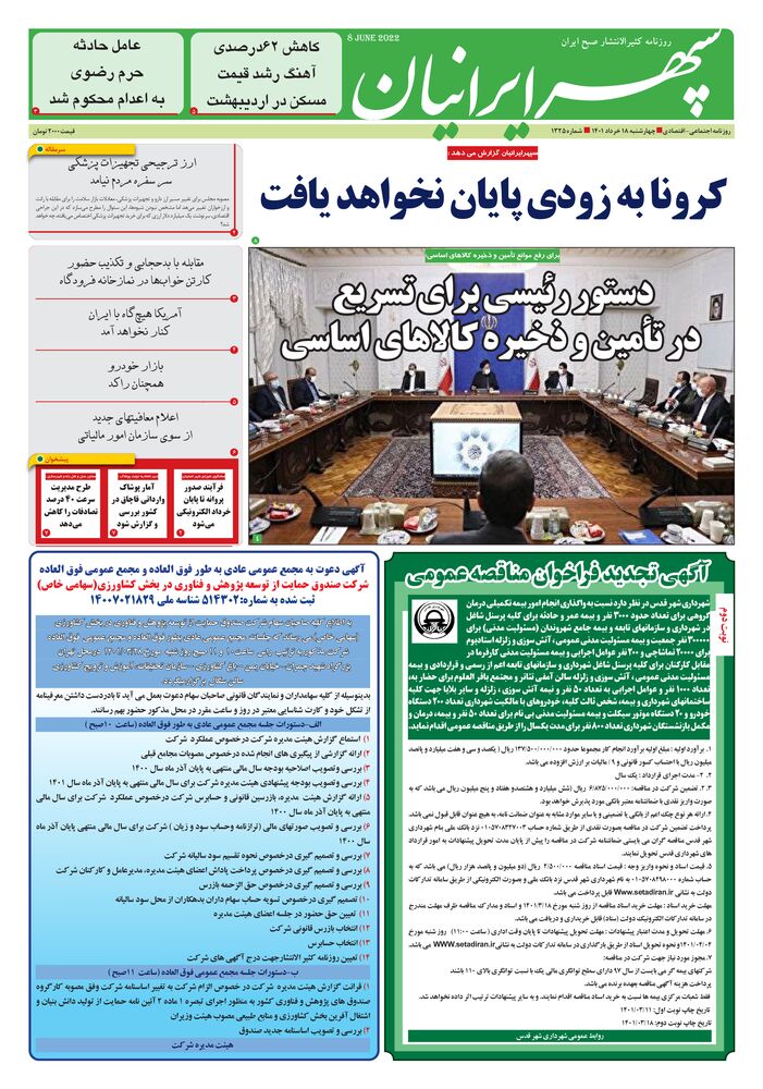 روزنامه اجتماعی -اقتصادی چهارشنبه 18خرداد 1401