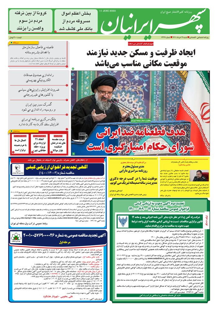 روزنامه اجتماعی -اقتصادی شنبه 21خرداد 1401