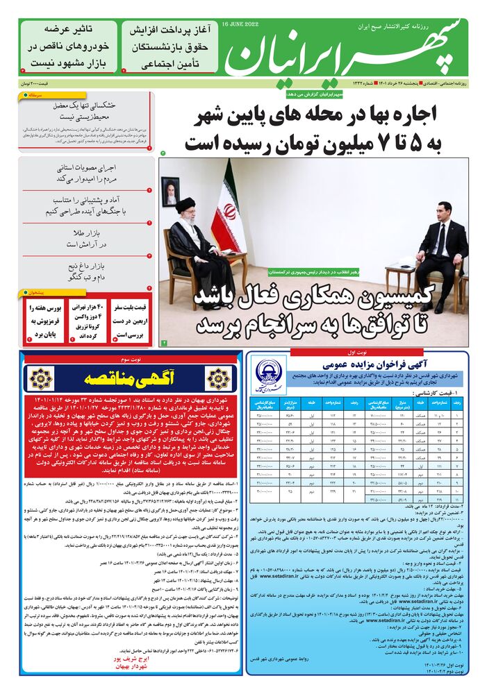 روزنامه اجتماعی -اقتصادی پنجشنبه 26خرداد 1401