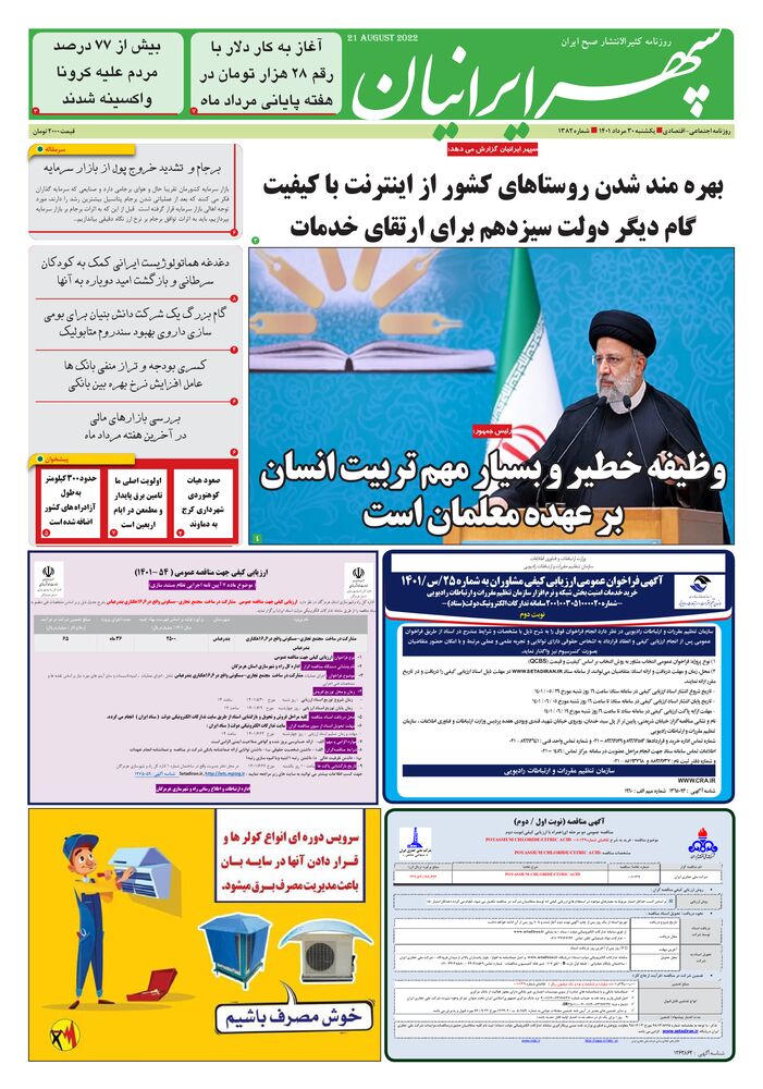 روزنامه اجتماعی -اقتصادی یکشنبه 30مرداد 1401