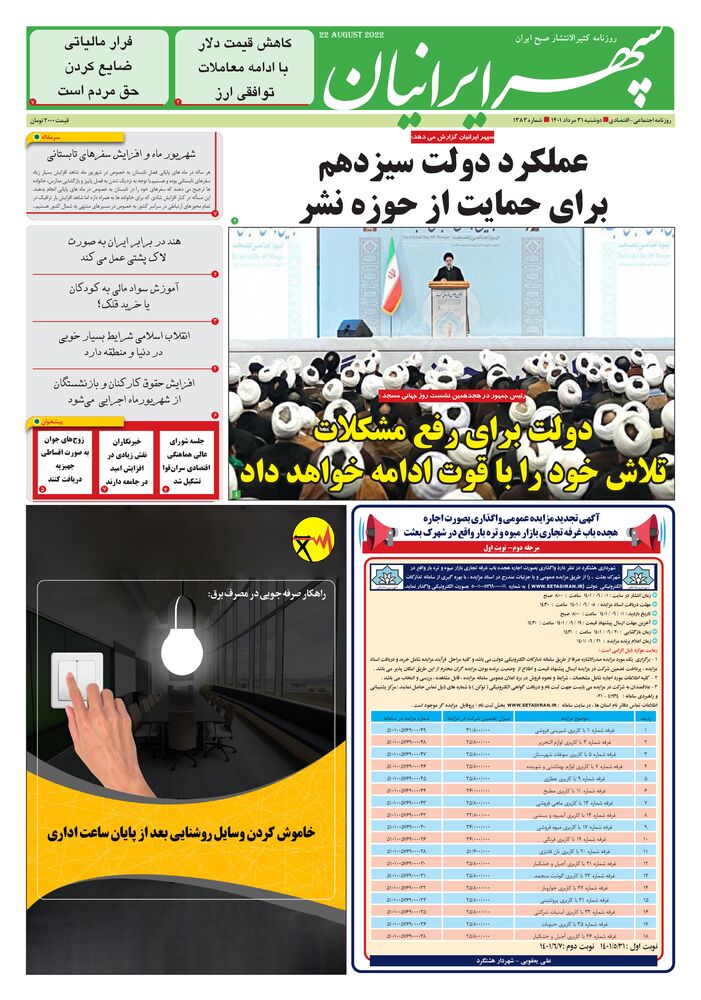 روزنامه اجتماعی -اقتصادی دوشنبه 31مرداد 1401
