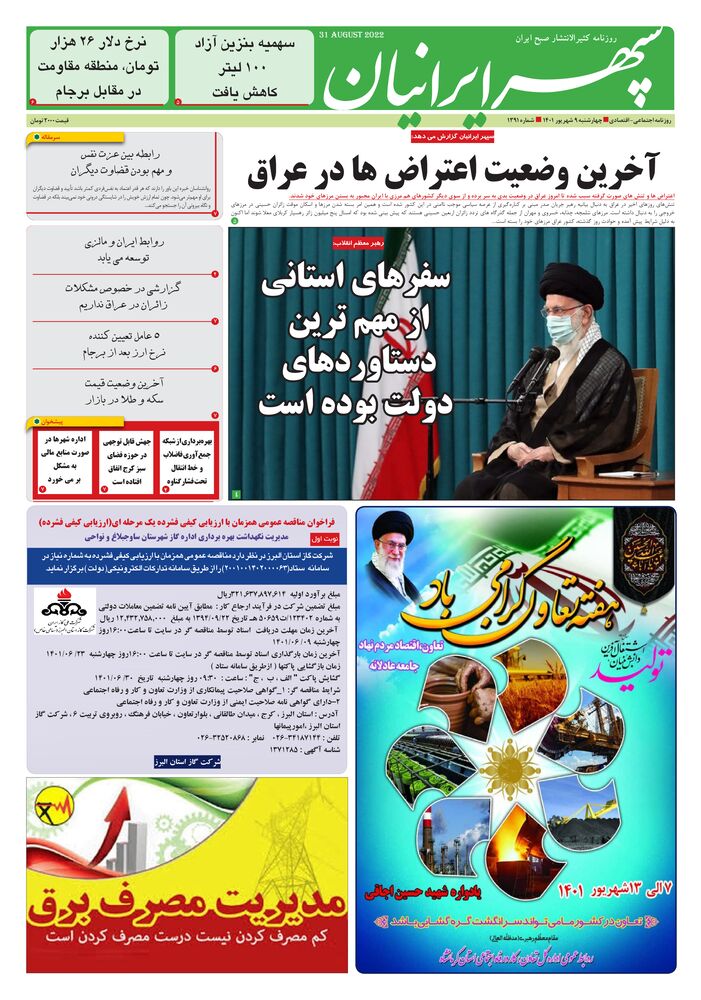 روزنامه اجتماعی -اقتصادی چهارشنبه 9شهریور 1401