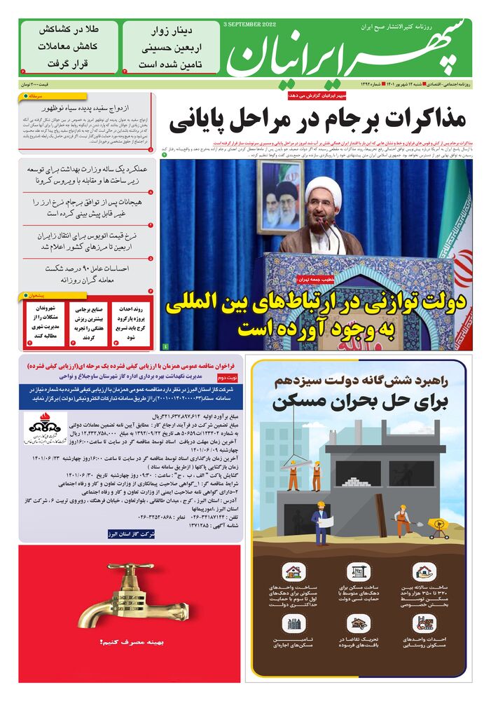 روزنامه اجتماعی -اقتصادی شنبه 12شهریور 1401