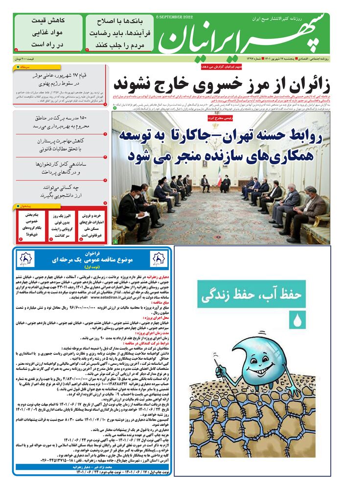 نوبت چاپ اول - 1401 / 06 / 17 :نوبت چاپ دوم 1401 / 06 / 24 : صفحه 1