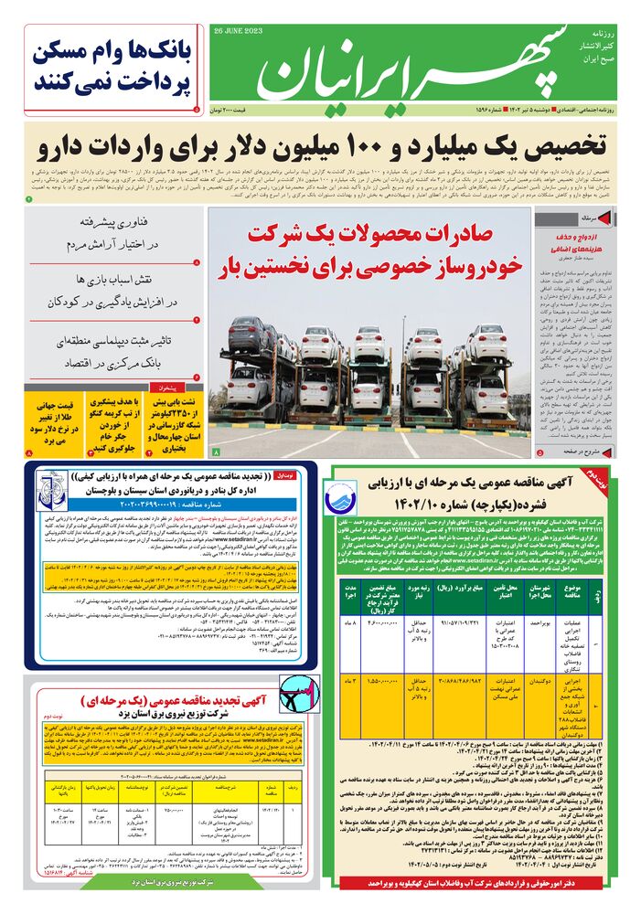 روزنامه سپهرایرانیان شماره 1596
