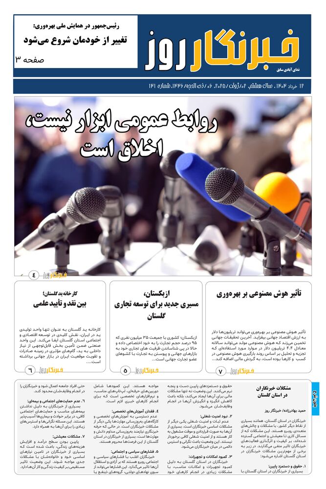هفته نامه خبرنگار روز شماره 141