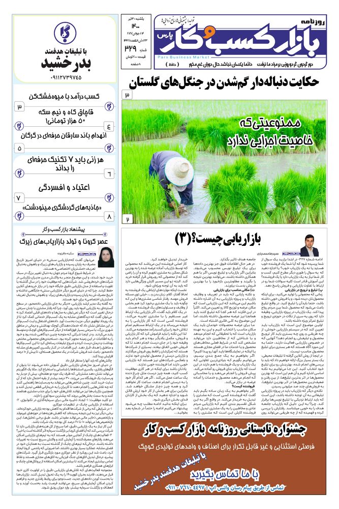 روزنامه بازار کسب و کار پارس شماره 329