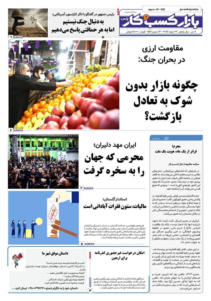 آخرین شماره های روزنامه بازار کسب و کار پارس