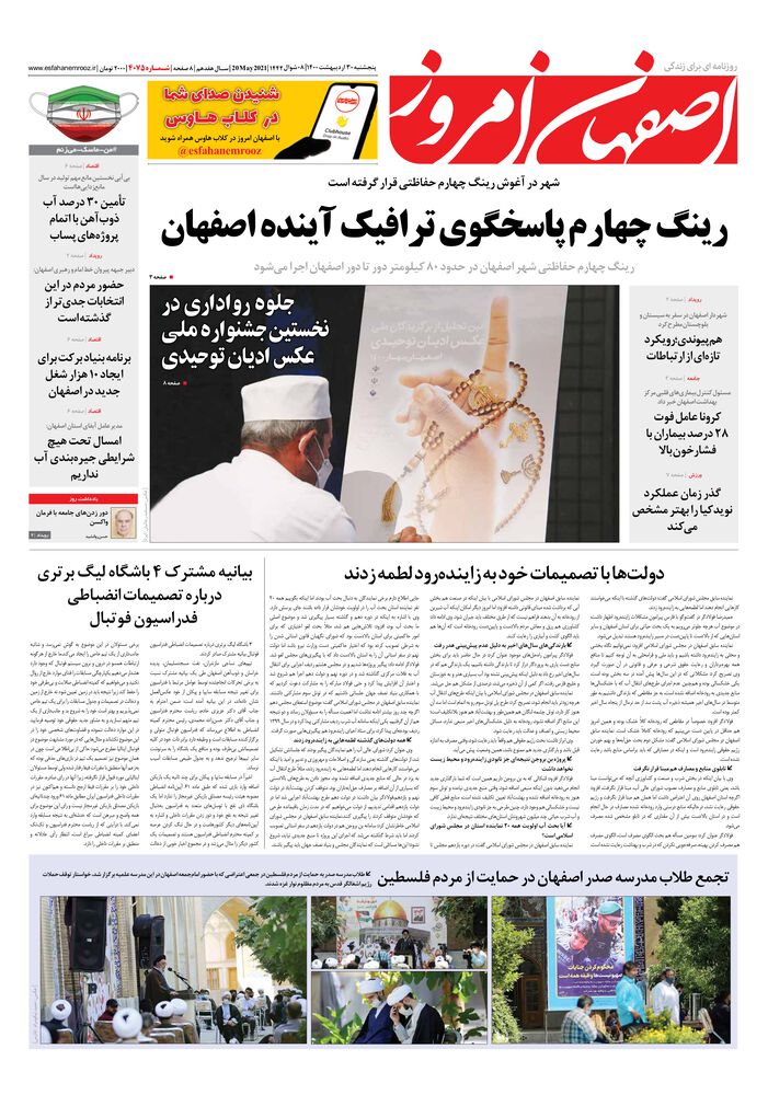 پنجشنبه 30اردیبهشت 08 |1400شوال | 20May2021| 1442سـال هفدهم | 8صفحه | شـمـاره 2000 | 4075تومان | www.esfahanemrooz.ir