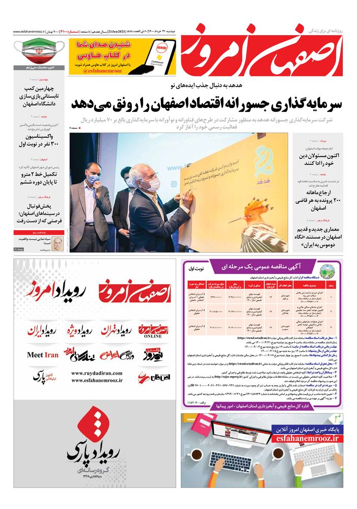 دوشنبه 31خرداد 10 |1400ذی القعده |21Jun2021| 1442سـال هفدهم | 8صفحه | شـمـاره 2000 | 4100تومان | www.esfahanemrooz.ir