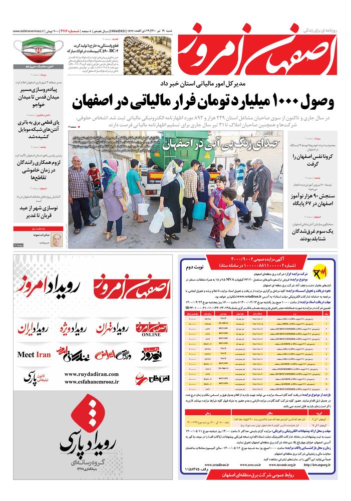 شنبه 19تیر 29 |1400ذی القعده |10Jul2021| 1442سـال هفدهم | 8صفحه | شـمـاره 2000 | 4116تومان | www.esfahanemrooz.ir