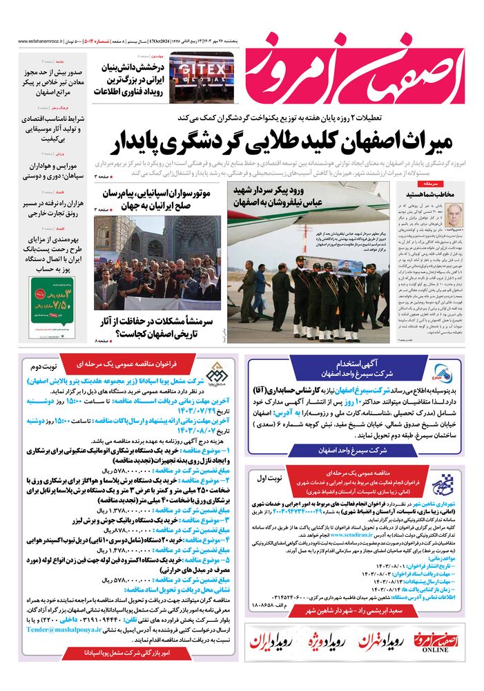 روزنامه اصفهان امروز شماره 5014