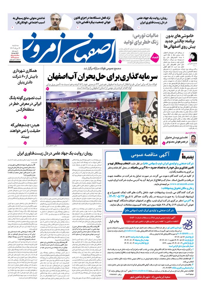 روزنامه اصفهان امروز شماره 5229