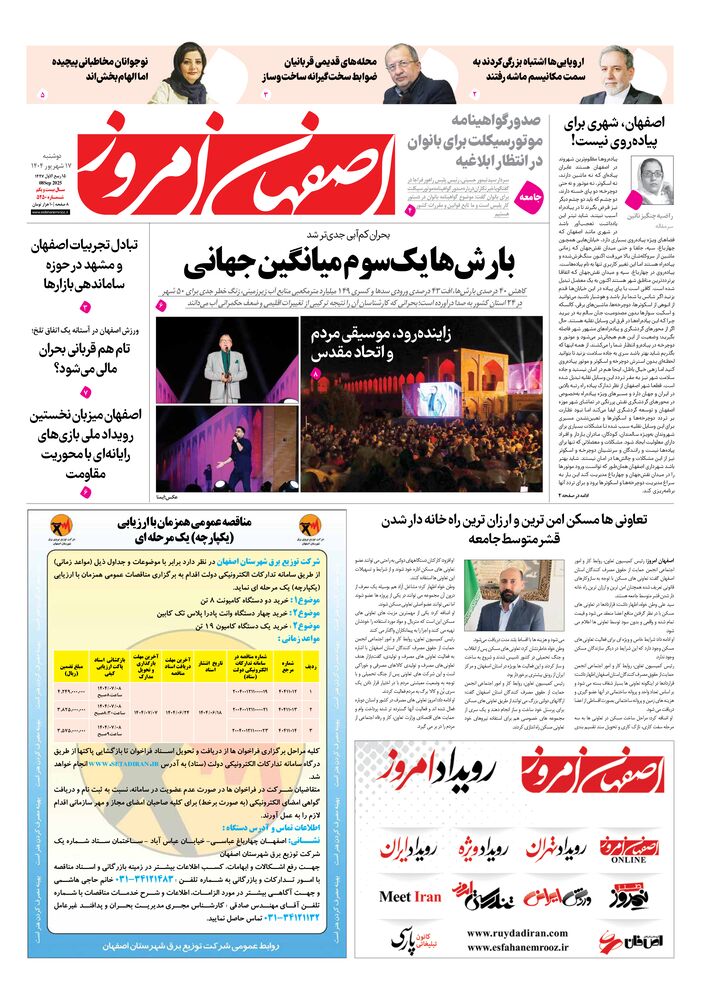 روزنامه اصفهان امروز شماره 5250