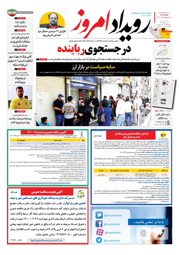 روزنامه رویداد امروز شماره 1056