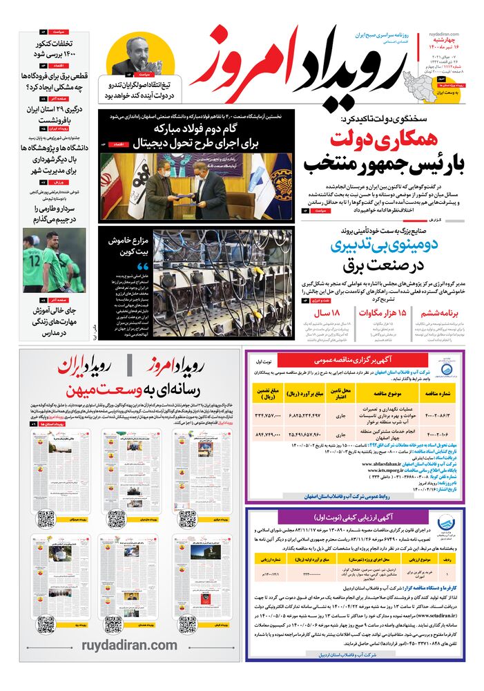 روزنامه رویداد امروز شماره 1112