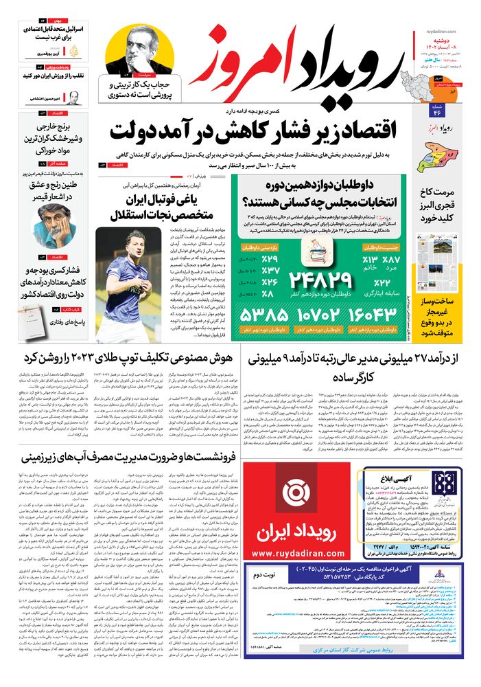 روزنامه رویداد امروز شماره 1752