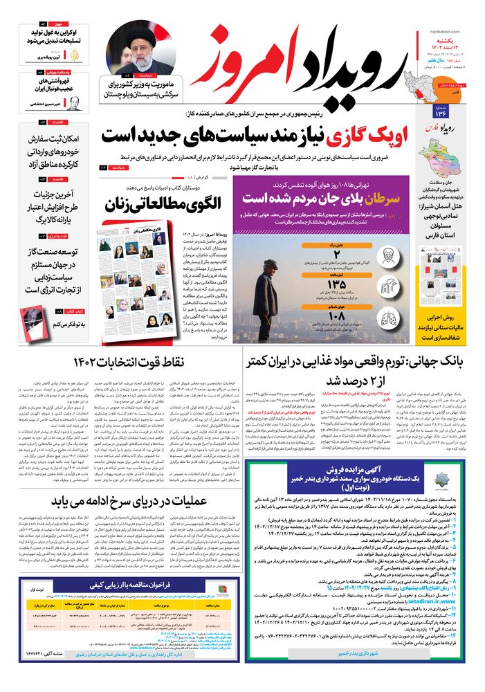 روزنامه رویداد امروز شماره 1852