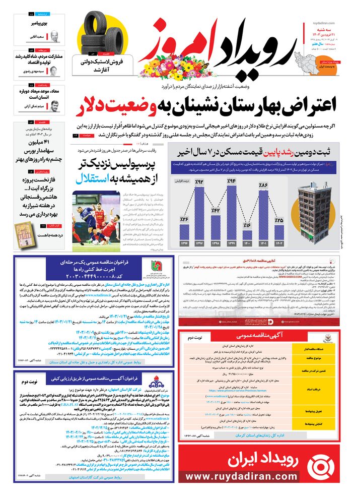 روزنامه رویداد امروز شماره 1868