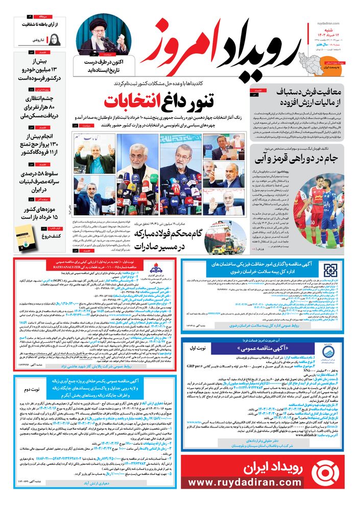 روزنامه رویداد امروز شماره 1909