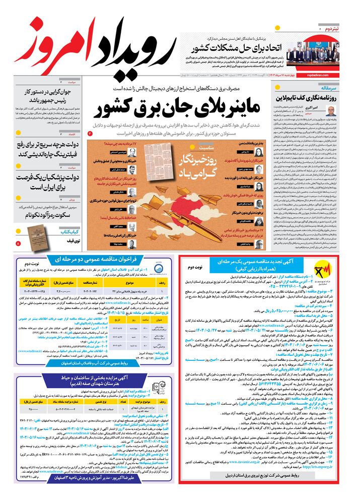 روزنامه رویداد امروز شماره 1960