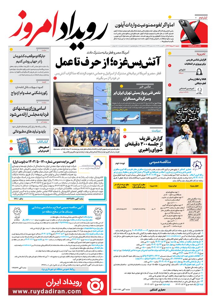 روزنامه رویداد امروز شماره 1961