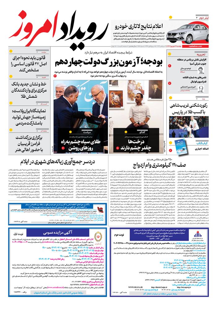روزنامه رویداد امروز شماره 1982