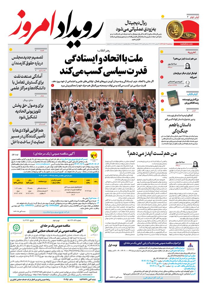 روزنامه رویداد امروز شماره 2047