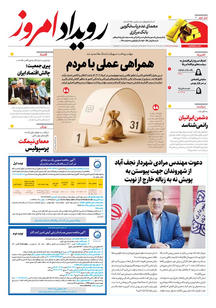 روزنامه رویداد امروز شماره 2205