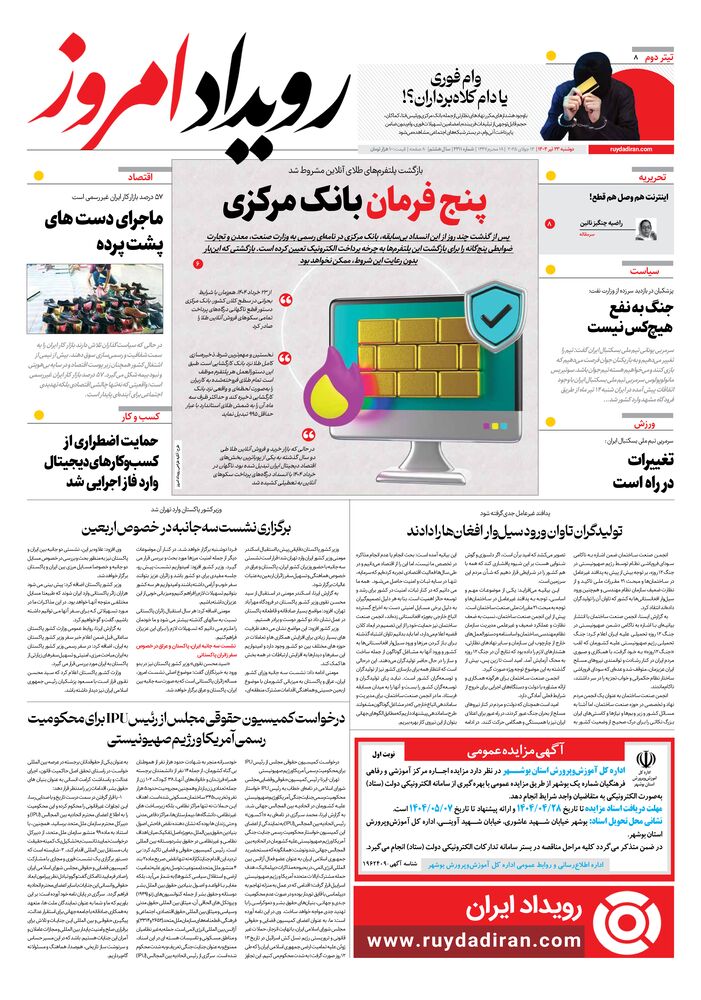 روزنامه رویداد امروز شماره 2211