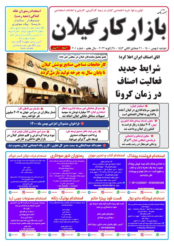 اولین و تنها نشریه اختصاصی گیالن در زمینه کارافرینی ،کاریابی و اطالعات استخدامی