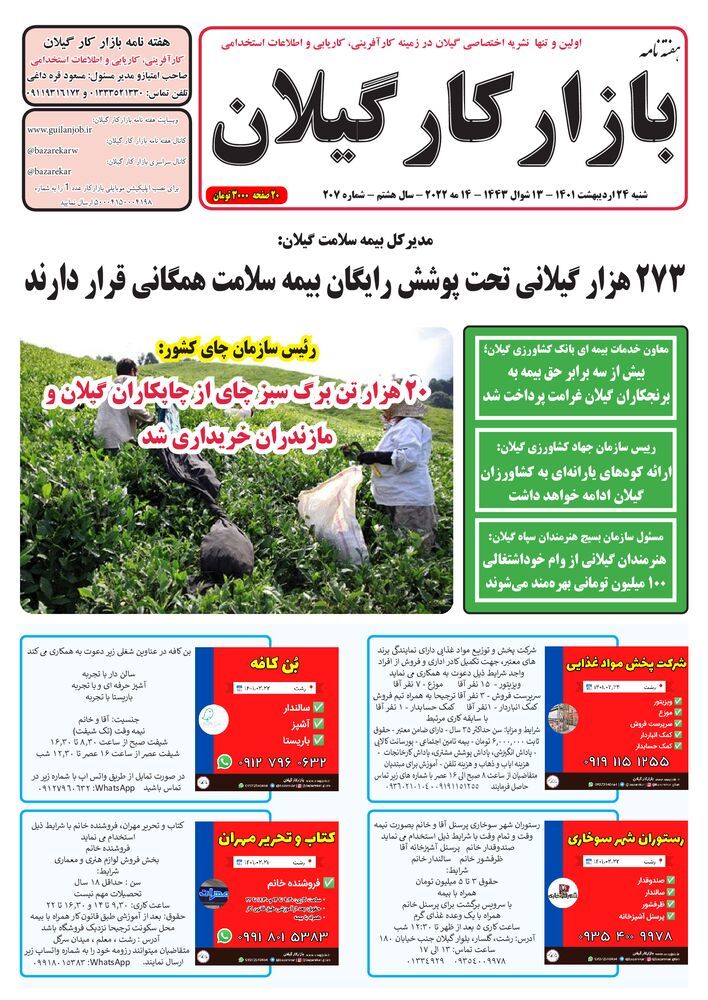 اولین و تنها نشریه اختصاصی گیالن در زمینه کارافرینی ،کاریابی و اطالعات استخدامی