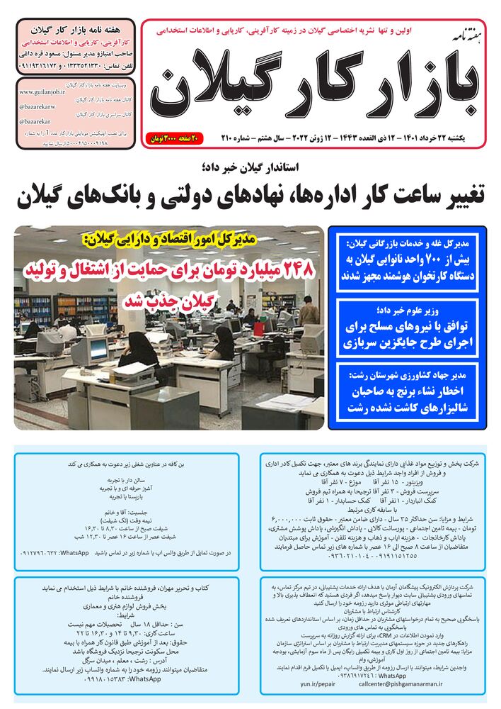 اولین و تنها نشریه اختصاصی گیالن در زمینه کارافرینی ،کاریابی و اطالعات استخدامی