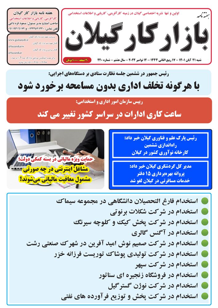 اولین و تنها نشریه اختصاصی گیالن در زمینه کارافرینی ،کاریابی و اطالعات استخدامی