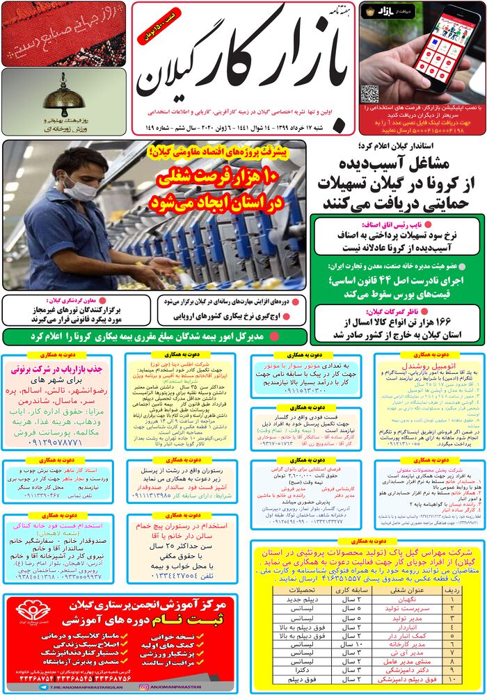 شنبه 17خرداد 14 - 1399شوال 6 - 1441ژوئن - 2020سال ششم -شماره 149