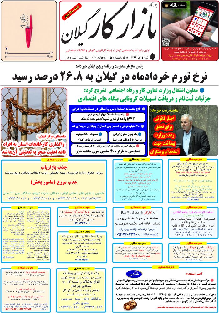 هفته نامه بازار کار گیلان شماره 153