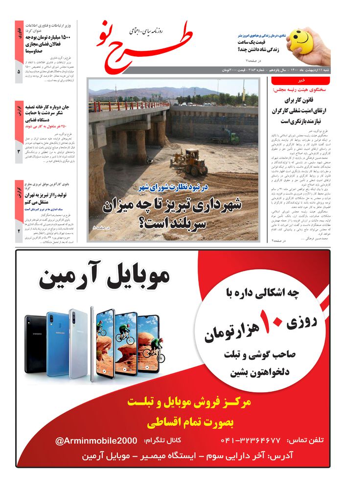 شنبه 11اردیبهشت ماه - 1400سال پانزدهم -شماره - 2183قیمت 2000تومان