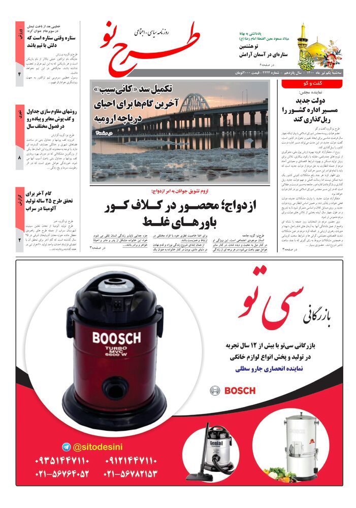 سه شنبه یکم تیر ماه - 1400سال پانزدهم -شماره - 2224قیمت 2000تومان