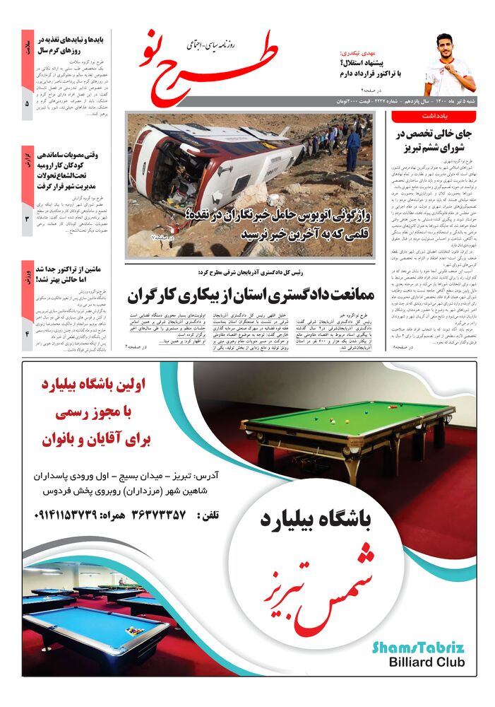 شنبه 5تیر ماه - 1400سال پانزدهم -شماره - 2227قیمت 2000تومان