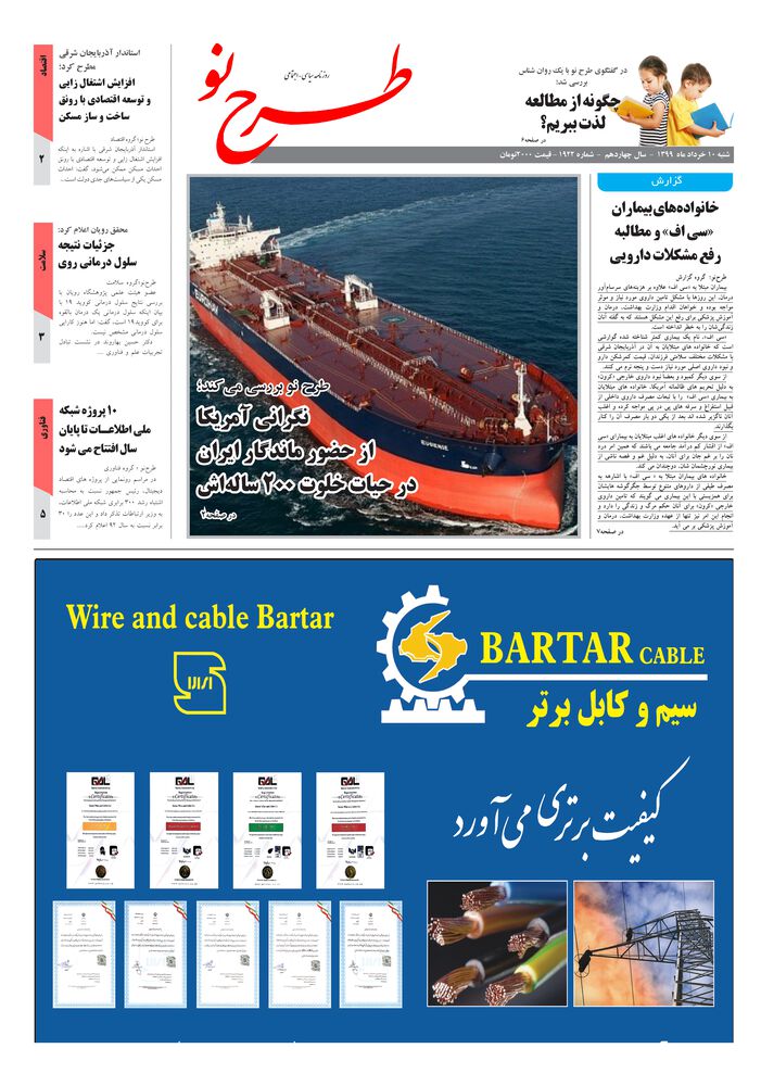 شنبه 10خرداد ماه - 1399سال چهاردهم -شماره - 1922قیمت 2000تومان