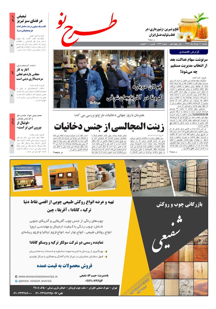 یکشنبه 11خرداد ماه - 1399سال چهاردهم -شماره - 1923قیمت 2000تومان